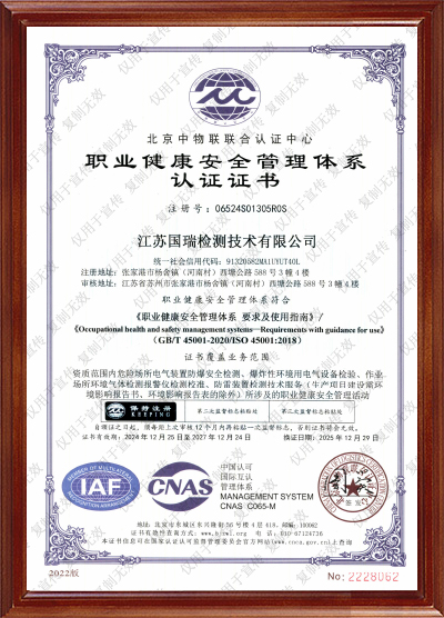 职业健康安全管理体系认证证书