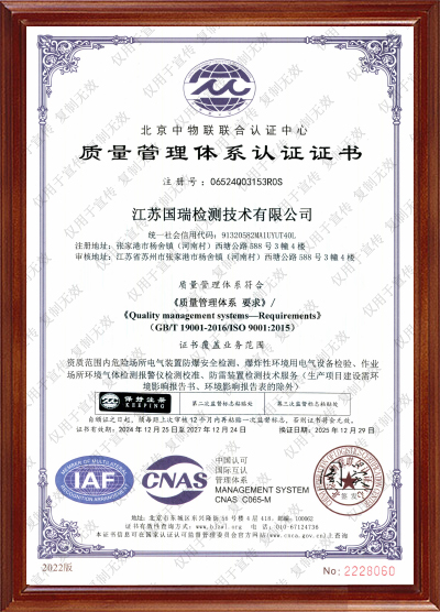 质量管理体系认证证书